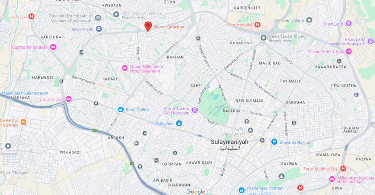 سلێمانی، بازنەی مەلیک محمود، خوار پردی کۆبانێ، بەرامبەر بەنزینخانەی بەختیار